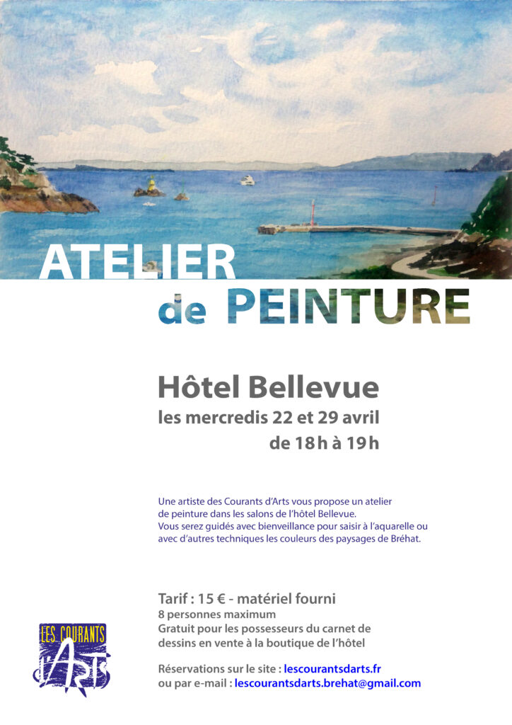 Inscriptions sur la page Réservations de notre site ou en envoyant un mail à : lescourantsdarts.brehat@gmail.com